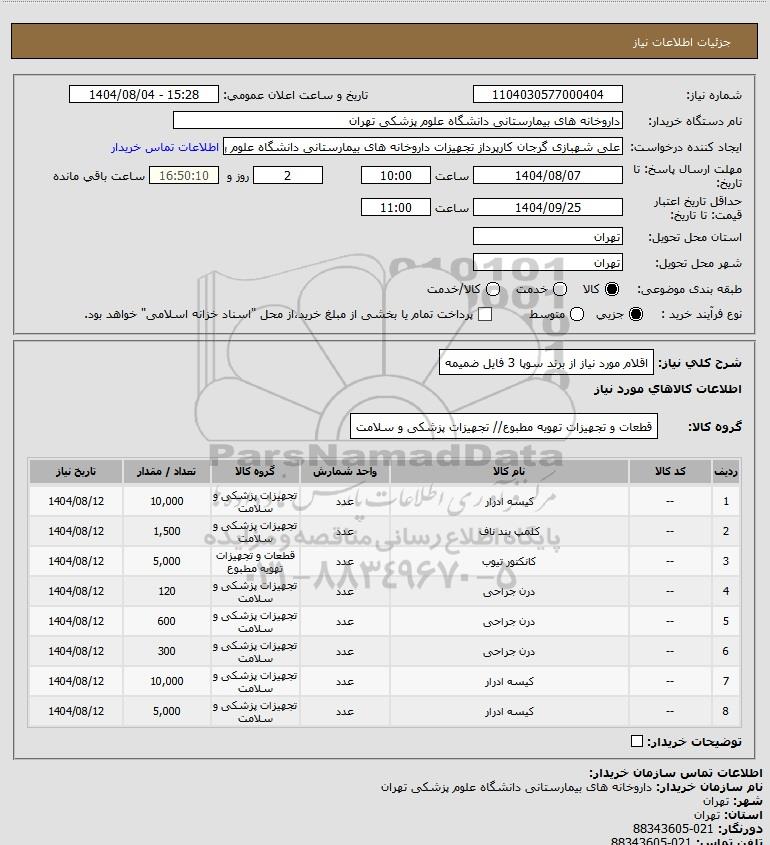 شرح کلی نیاز: اقلام مورد نیاز از برند سوپا 3 فایل ضمیمه