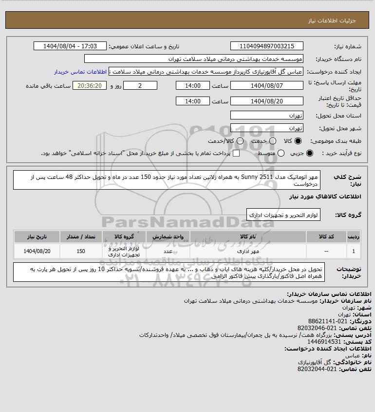 1 -- مهر اداری عدد لوازم التحریر و تجهیزات اداری 150 1404/08/20