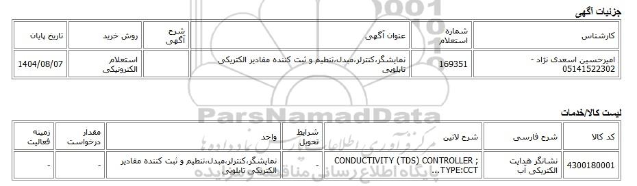 امیرحسین اسعدی نژاد - 05141522302169351نمایشگر،کنترلر،مبدل،تنطیم و ثبت کننده مقادیر الکتریکی تابلوییاستعلام الکترونیکی1404/08/07