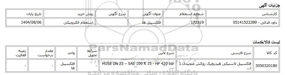 داود فدائی - 05141522289172319فلکسیبل هااستعلام الکترونیکی1404/08/06