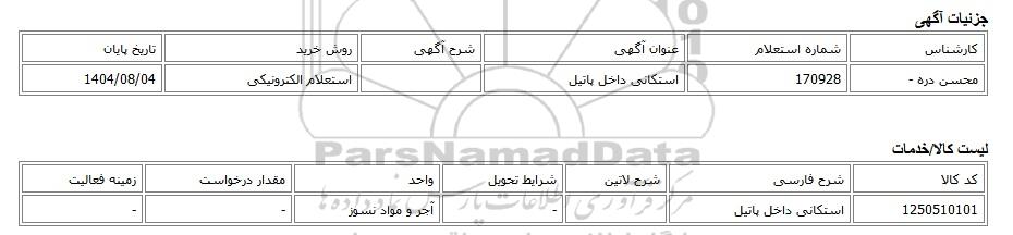 کارشناسشماره استعلامعنوان آگهیشرح آگهیروش خریدتاریخ پایان