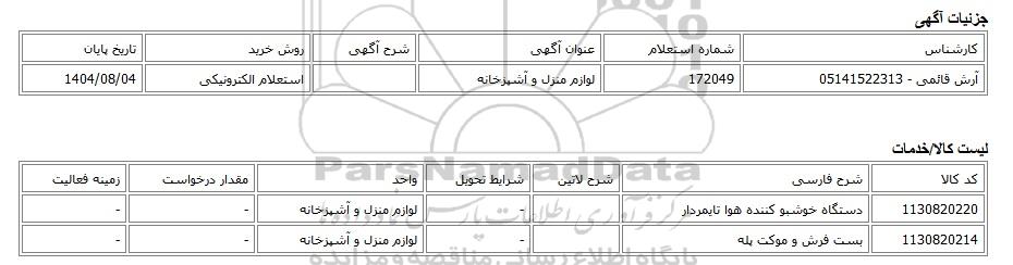 استعلام الکترونیکی لوازم منزل و آشپزخانه, استعلام الکترونیکی، لوازم منزل و آشپزخانه