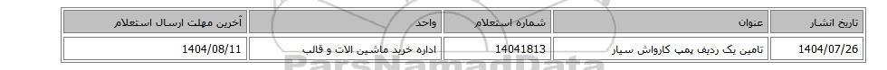 1404/07/26تامین یک ردیف پمپ کارواش سیار14041813اداره خرید ماشین الات و قالب1404/08/11