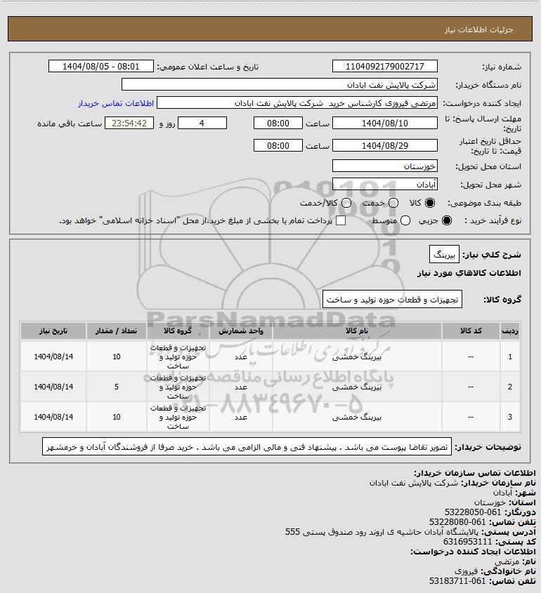 نام دستگاه خریدار:شرکت پالایش نفت ابادان