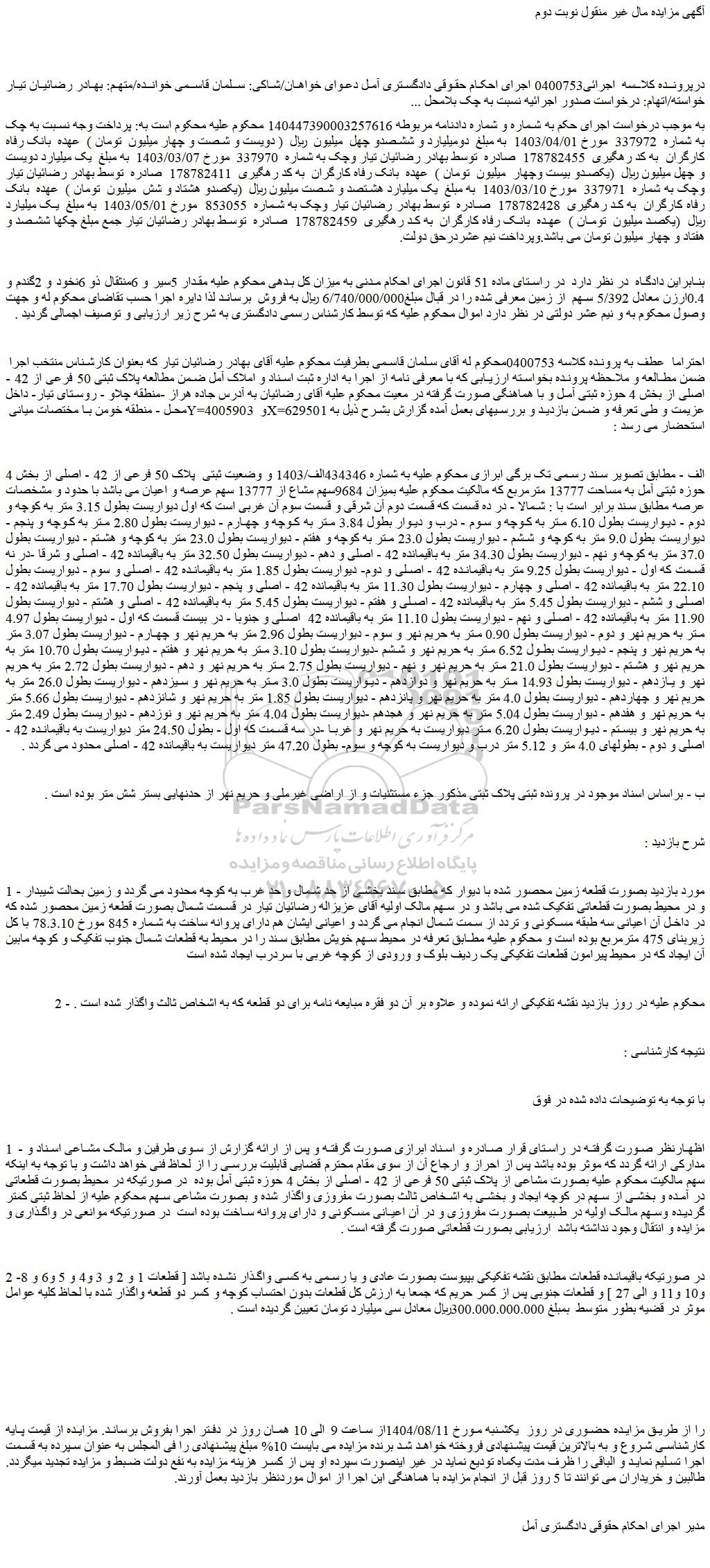 مزایده ملک وضعیت ثبتی  پلاک 50 فرعی از 42 - اصلی, مزایده ملک وضعیت ثبتی  پلاک 50 فرعی از 42 - اصلی