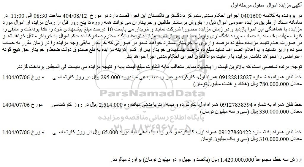 مزایده عمومی مزایده خط تلفن همراه برگزار میگردد. از کلیه افراد متخصص و شرکتهای واجد شرایط دعوت به عمل میآید تا در این مزایده با کد خبرگزاری پارس نماد : 9757131 شرکت نمایند تاریخ شروع مزایده : 1404/07/25 مهلت شرکت در مزایده: تا پایان روز 1404/08/12 مکان برگزاری اموال واگذاری استانهای قزوین و دستهبندیهای مربوط به این حراجی متفرقه, واگذاری و فروش سیم کارت میباشد.