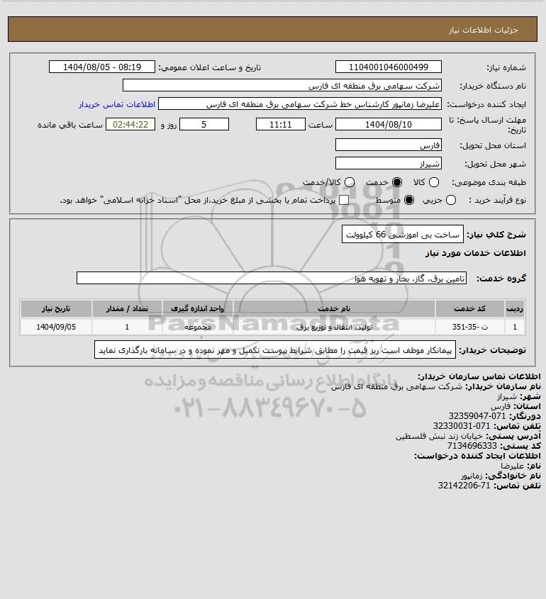 شرح کلی نیاز: ساخت بی اموزشی 66 کیلوولت