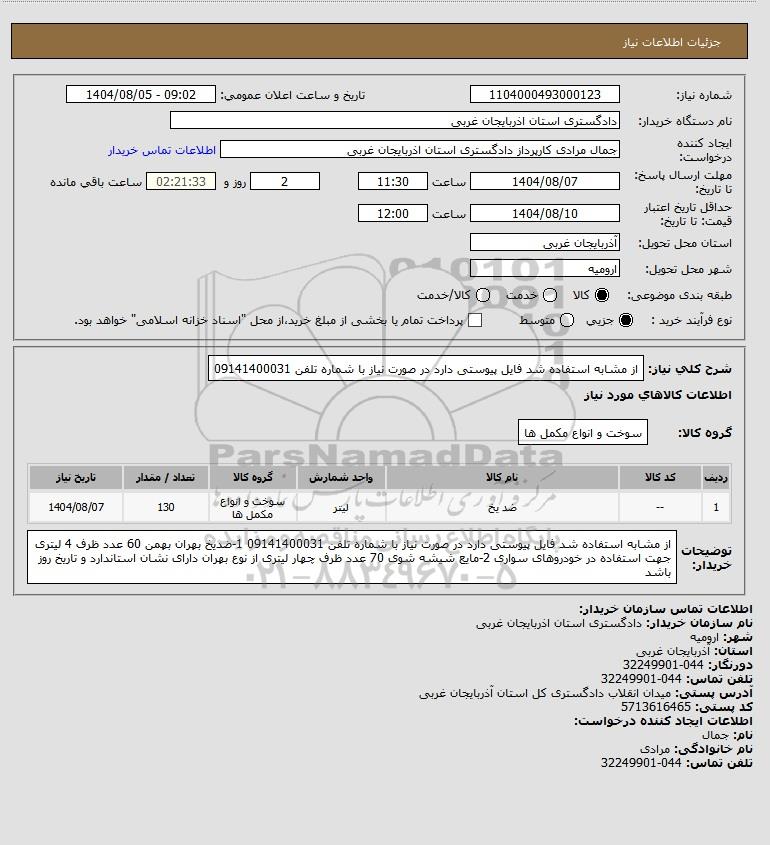 نام دستگاه خریدار:دادگستری استان اذربایجان غربی