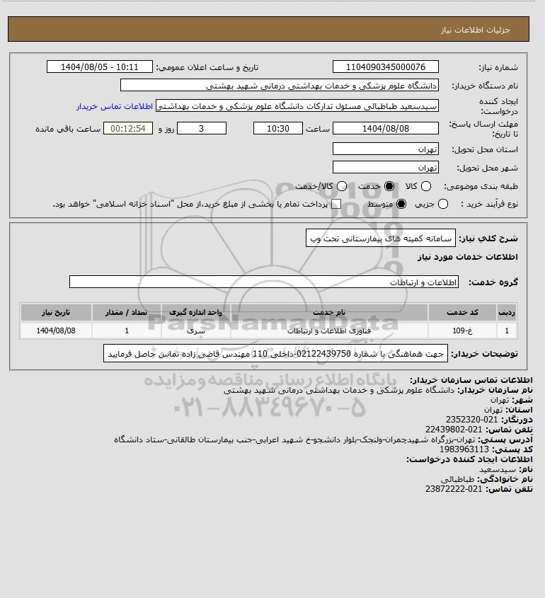 نام دستگاه خریدار:دانشگاه علوم پزشکی و خدمات بهداشتی درمانی شهید بهشتی