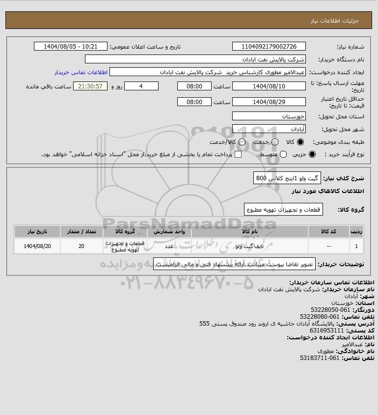 1 -- نایف گیت ولو عدد قطعات و تجهیزات تهویه مطبوع 20 1404/08/20