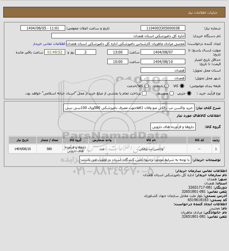 نام دستگاه خریدار:اداره کل دامپزشکی استان همدان
