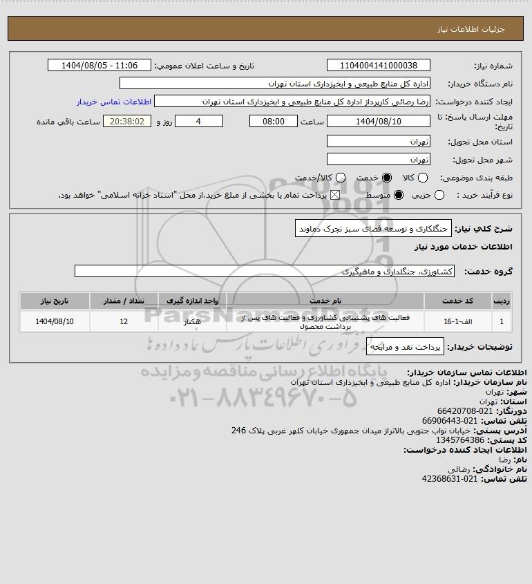 شرح کلی نیاز: جنگلکاری و توسعه فضای سبز تجرک دماوند