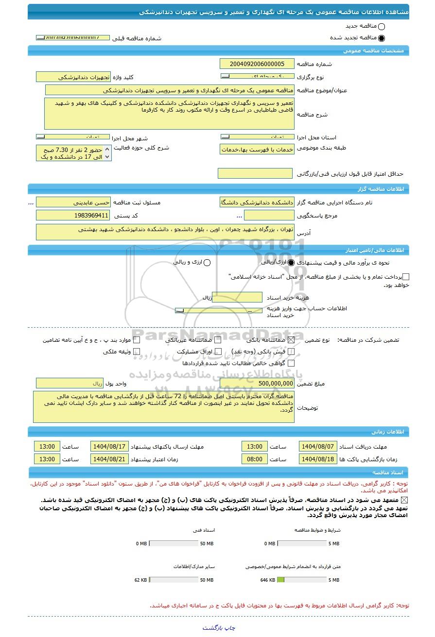 مناقصه مناقصه عمومی یک مرحله ای نگهداری و تعمیر و سرویس تجهیزات دندانپزشکی, مناقصه، مناقصه عمومی یک مرحله ای نگهداری و تعمیر و سرویس تجهیزات دندانپزشکی