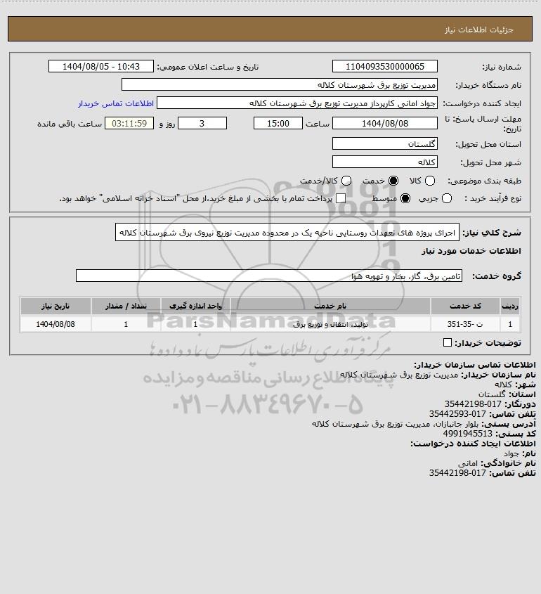 شرح کلی نیاز: اجرای پروژه های تعهدات روستایی ناحیه یک در محدوده مدیریت توزیع نیروی برق شهرستان کلاله