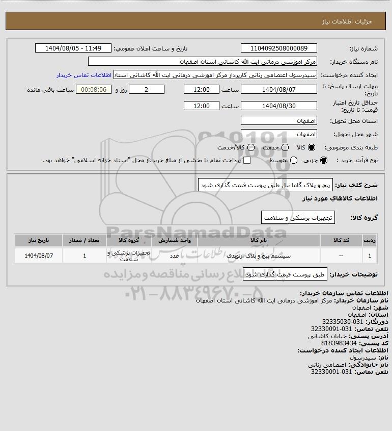 نام دستگاه خریدار:مرکز اموزشی درمانی ایت الله کاشانی استان اصفهان
