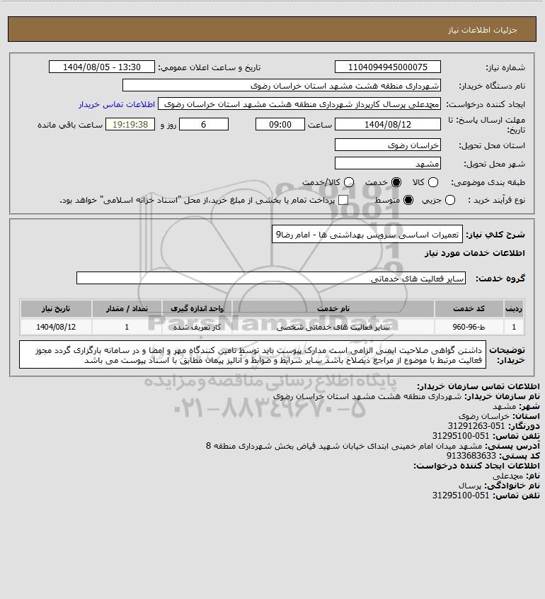 شرح کلی نیاز: تعمیرات اساسی سرویس بهداشتی ها - امام رضا9