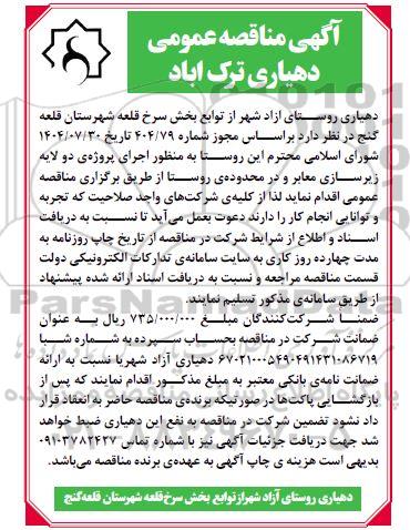 آگهی مناقصه عمومی دهیاری ترک آباد