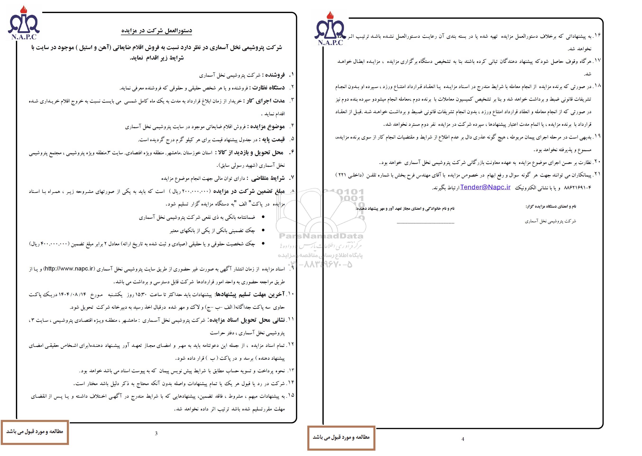 4- موضوع مزایده : فروش اقلام ضایعاتی موجود در سایت پتروشیمی نخل آسماری