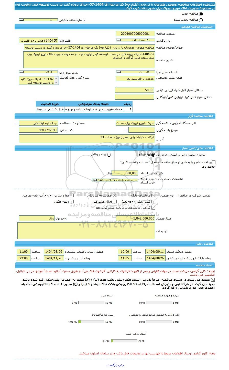 | شماره مناقصه | 2004007006000081 | ||||||||