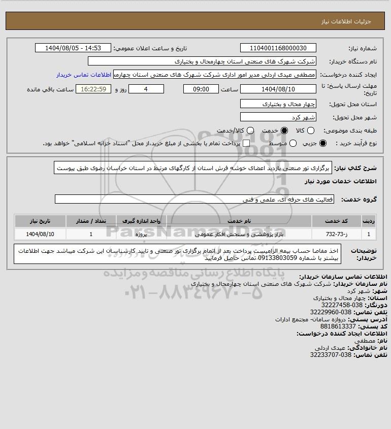 3 استعلام برگزاری تور صنعتی بازدید از واحد های صنعتی منتخب استان گیلان طبق پیوست 9781020 1404/08/10 new not special not payed چهارمحال و بختیاری