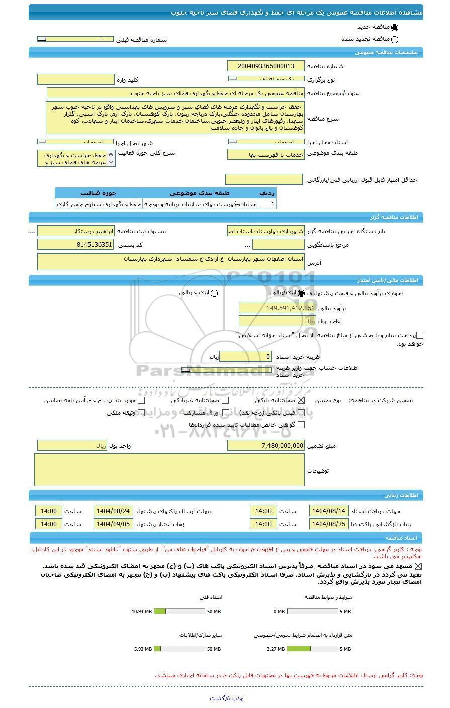 | نام دستگاه اجرایی مناقصه گزار | شهرداری بهارستان استان اصفهان | مسئول ثبت مناقصه | ابراهیم درستکار |