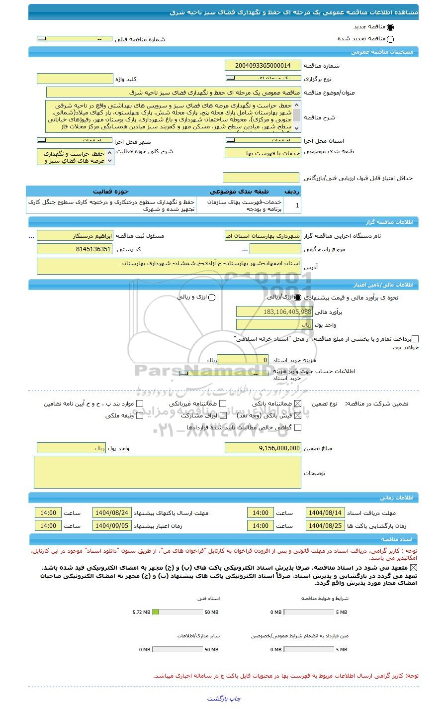 | مبلغ تضمین | 9,156,000,000 | واحد پول | ریال |