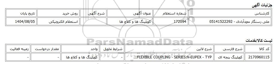 علی رستگار محمدآبادی - 05141522292172094کوپلینگ ها و کلاچ هااستعلام الکترونیکی1404/08/05