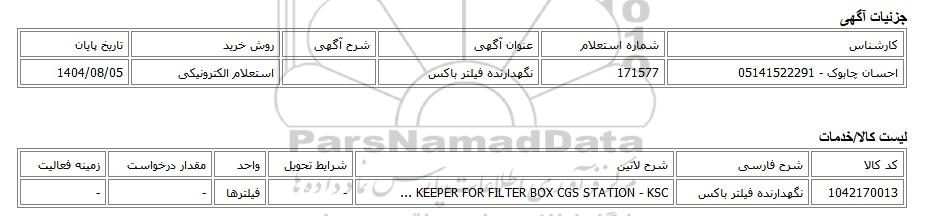 احسان چابوک - 05141522291171577نگهدارنده فیلتر باکساستعلام الکترونیکی1404/08/05