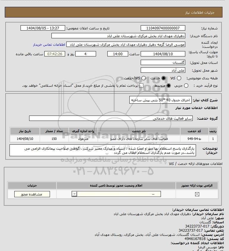 شرح کلی نیاز: اجرای جدول 40 *50 بتنی پیش ساخته