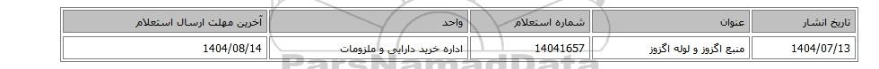 1404/07/13منبع اگزوز و لوله اگزوز14041657اداره خرید دارایی و ملزومات1404/08/14