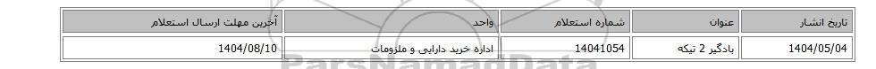1404/05/04بادگیر ‎2 تیکه‏14041054اداره خرید دارایی و ملزومات1404/08/10