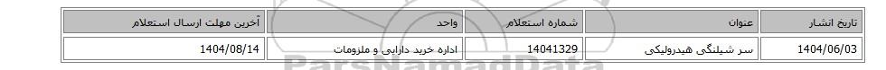 | 1404/06/03 | سر شیلنگی هیدرولیکی | 14041329 | اداره خرید دارایی و ملزومات | 1404/08/14 |