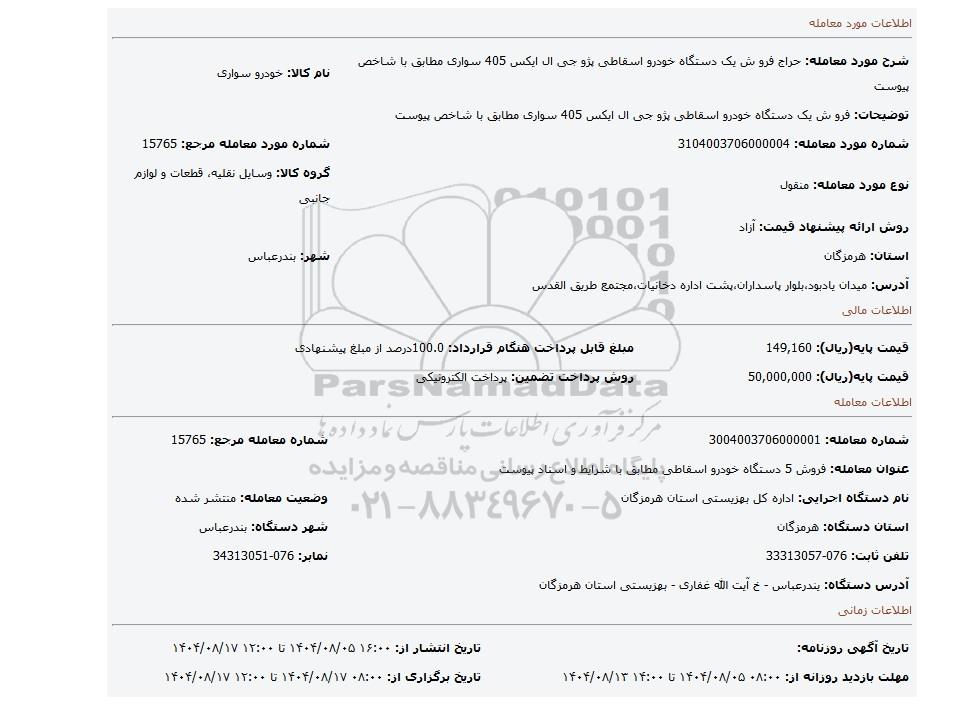 | شماره مورد معامله: 3104003706000004 | شماره مورد معامله مرجع: 15765 | |
