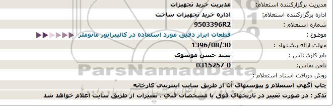 موضوع: قطعات ابزار دقیق مورد استفاده در کالیبراتور مانومتر