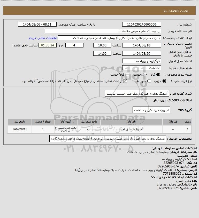 نام دستگاه خریدار:بیمارستان امام خمینی دهدشت