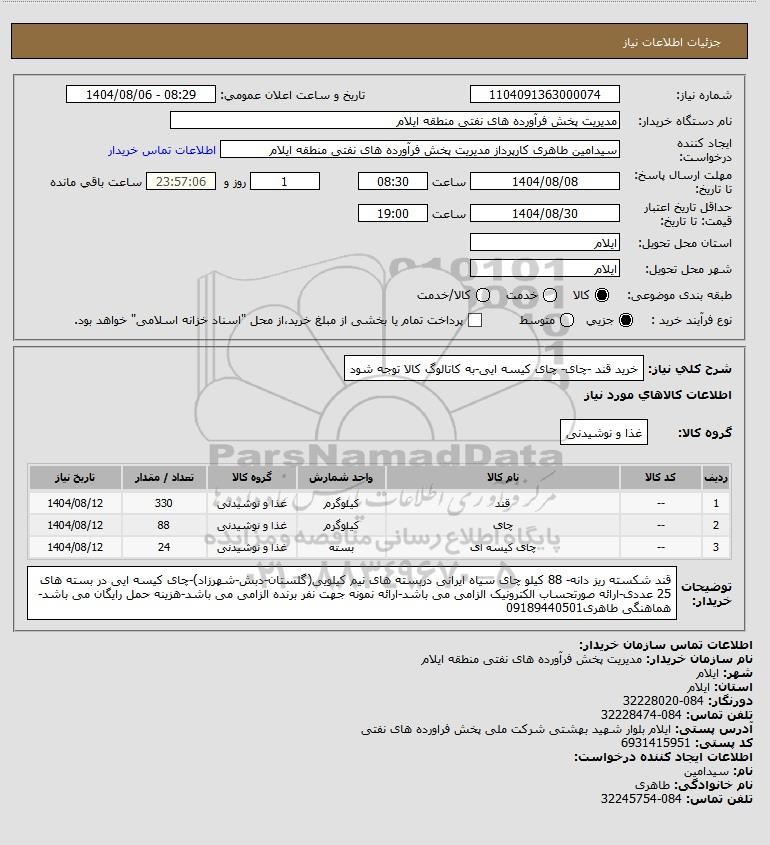 شرح کلی نیاز: خرید قند -چای- چای کیسه ایی-به کاتالوگ کالا توجه شود