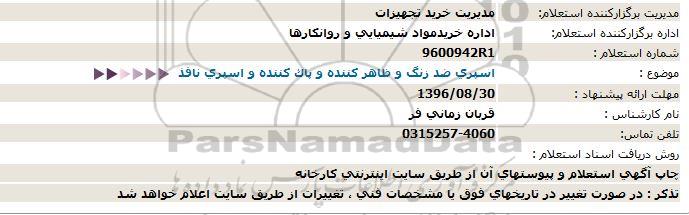 استعلام اسپری ضد زنگ و ظاهر کننده و پاک کننده, استعلام ,استعلام اسپری ضد زنگ و ظاهر کننده و پاک کننده