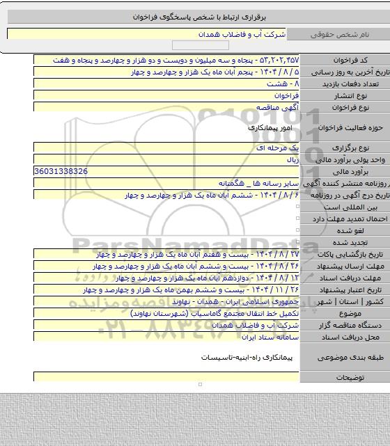 مناقصه تکمیل خط انتقال مجتمع گاماسیاب (شهرستان نهاوند), مناقصه, تکمیل خط انتقال مجتمع گاماسیاب (شهرستان نهاوند)