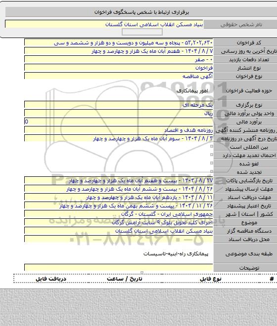 مناقصه اجرای کلید تحویل بلوک ۹ سایت آرامش گرگان, مناقصه, اجرای کلید تحویل بلوک ۹ سایت آرامش گرگان