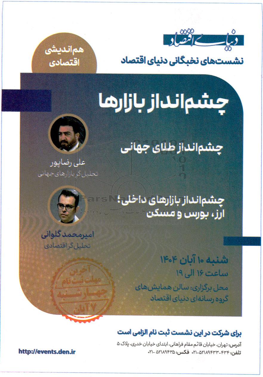 ساعت 16 الی 19 محل برگزاری سالن همایش های گروه رسانه ای دنیای اقتصاد