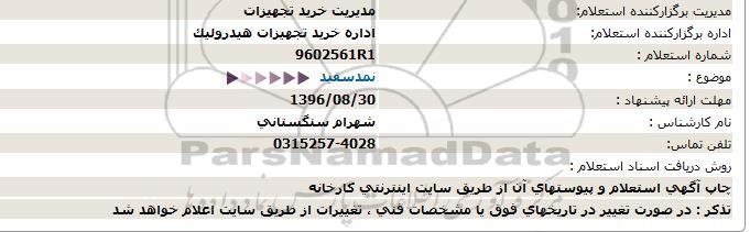 اداره برگزارکننده استعلام: اداره خرید تجهیزات هیدرولیک