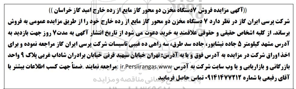 ((آگهی مزایده فروش 7 دستگاه مخزن دو محور گاز مایع از رده خارج امید گاز خراسان ))