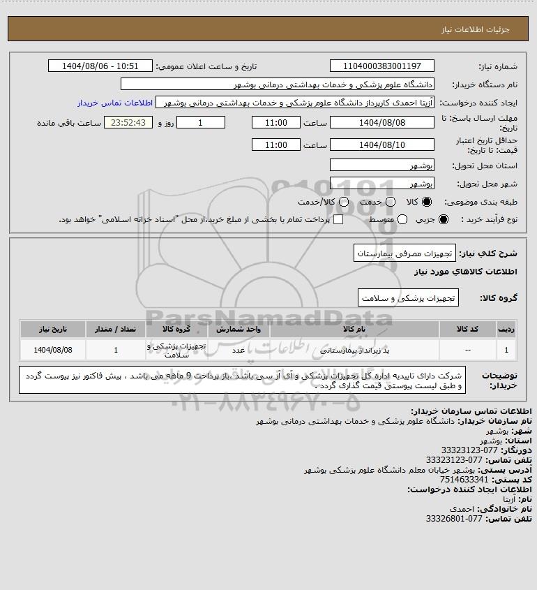 نام دستگاه خریدار:دانشگاه علوم پزشکی و خدمات بهداشتی درمانی بوشهر