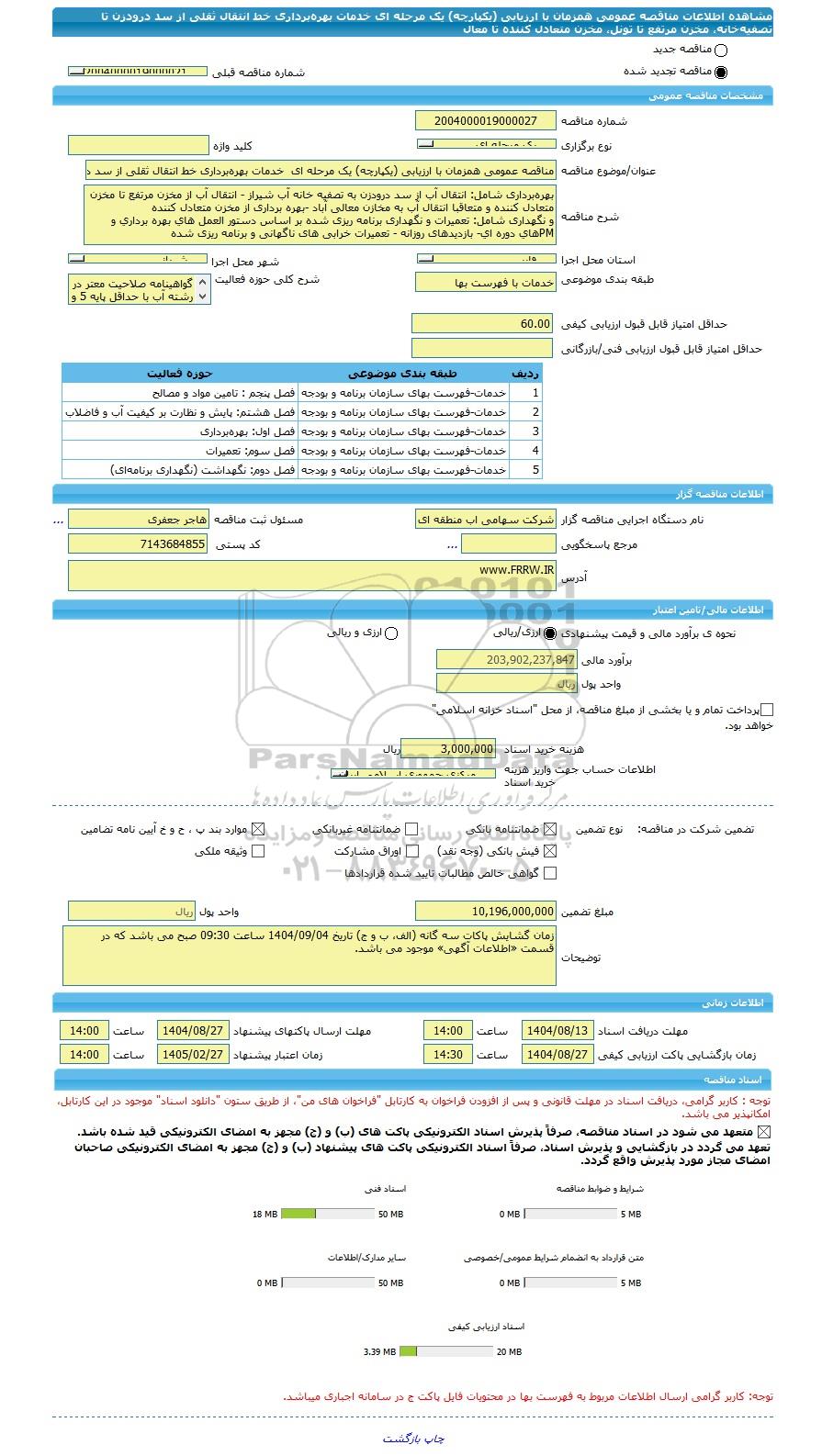 | شماره مناقصه | 2004000019000027 | ||||||||||||||||||||