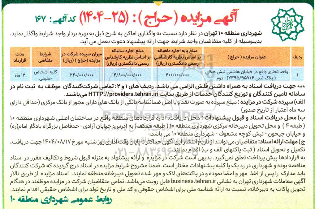 آگهی مزایده (حراج) 25-1404 / کد آگهی : 167 ؟
