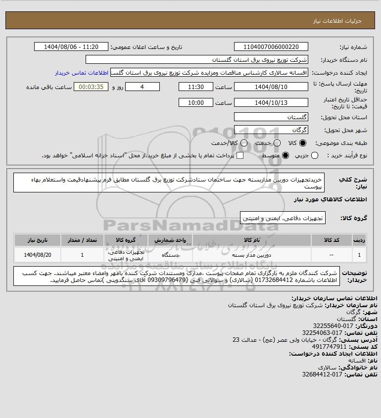 نام دستگاه خریدار:شرکت توزیع نیروی برق استان گلستان