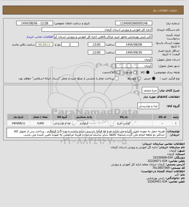 نام دستگاه خریدار:اداره کل اموزش و پرورش استان کرمان