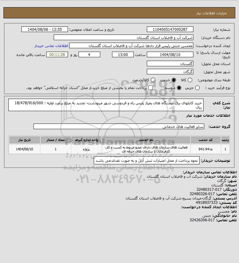 نام سازمان خریدار: شرکت آب و فاضلاب استان گلستان