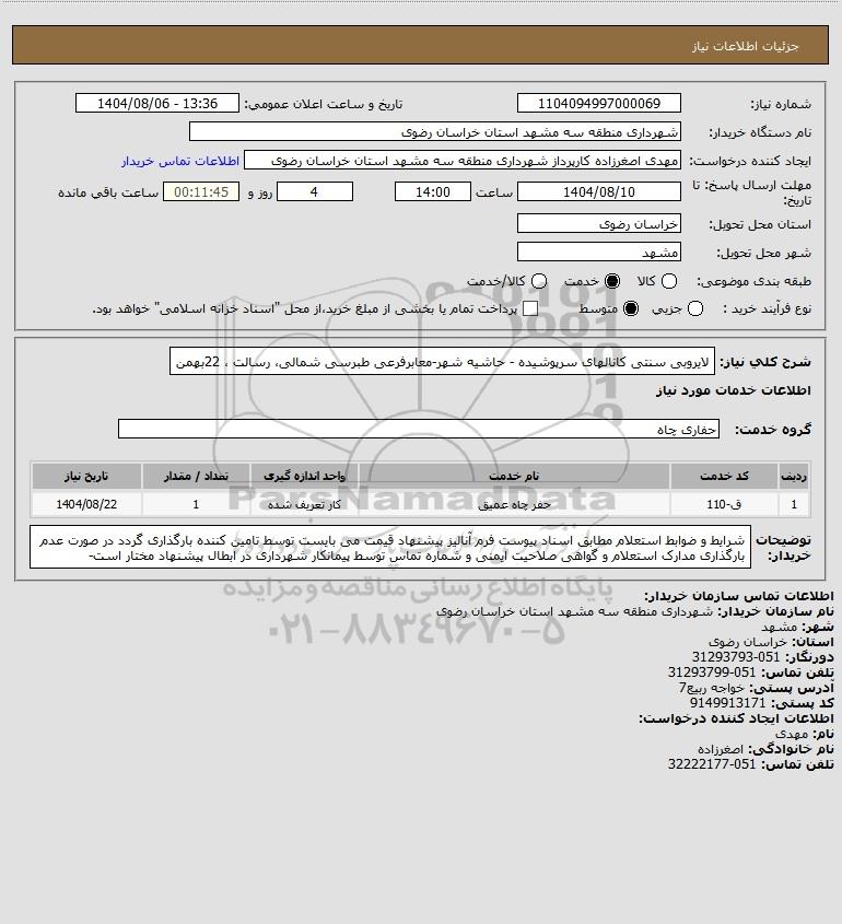 نام دستگاه خریدار:شهرداری منطقه سه مشهد استان خراسان رضوی