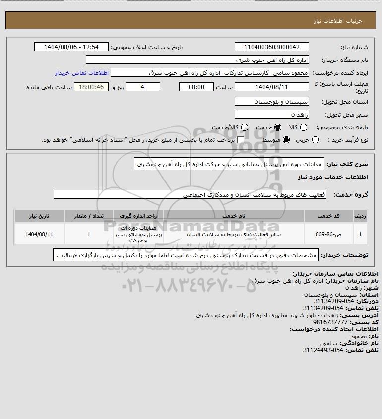 استعلام معاینات دوره ایی پرسنل عملیاتی سیر و حرکت اداره کل راه آهن جنوبشرق, استعلام معاینات دوره ایی پرسنل عملیاتی سیر و حرکت اداره کل راه آهن جنوبشرق